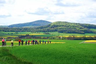 Nachdem alle Teilnehmer, ob mit oder ohne Motor, den Anstieg erfolgreich gemeistert hatten, ging es am Fuße des Soisbergs entlang in Richtung Wehrshausen. Von dort aus weiter auf dem Kuppenrhön-Radweg entlang der ehemaligen Bahntrasse nach Oberlengsfeld.