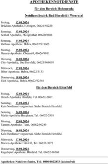 Kein Notdienst vorgesehen. Siehe Bereich Hersfeld.