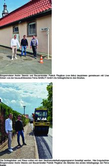 „Mit dieser Maßnahme können Schlaglöcher und Risse in den Straßen beseitigt werden, womit das Eindringen von Feuchtigkeit künftig reduziert bzw. unterbunden wird. Damit soll die Lebensdauer der Straßen wesentlich verlängert werden.“ so Bürgermeister Andre Stenda und Bauamtsleiter Patrick Pingitzer.
