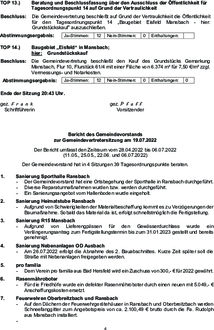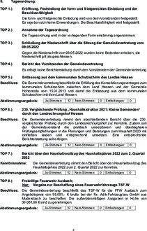 | TOP 3.) | Schließung der Niederschrift über die Sitzung der Gemeindevertretung vom 09.05.2022 |