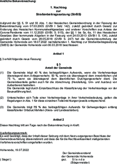 Aufgrund der §§ 5, 51 und 93 Abs. 1 der Hessischen Gemeindeordnung in der Fassung der Bekanntmachung vom 07.03.2005 (GVBl I Satz 142), zuletzt geändert durch Gesetz zur Änderung des Hessischen Kommunalwahlgesetzes und anderer Vorschriften aus Anlass der Corona-Pandemie vom 11.12.2020 (GVBl. S. 915), der §§ 1 bis 5a, 6a, 11 des Hessischen Gesetzes über kommunale Abgaben in der Fassung vom 24.03.2013 (GVBl I S. 134), zuletzt geändert durch Gesetz vom 28.05.2018 (GVBl S. 247) hat die Gemeindevertretung der Gemeinde Hohenroda am 18.07.2022 nachstehenden 1. Nachtrag zur Straßenbeitragssatzung (StrBS) der Gemeinde Hohenroda vom 06.03.2018 beschlossen: