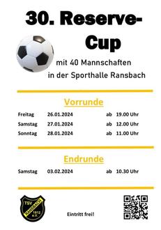 Am 26.01.24 ist es soweit: Der 30.!!! Reserve Cup startet in der wohl vollbesetzten Halle in Ransbach und das absolute Highlight der Hallenserie beginnt.