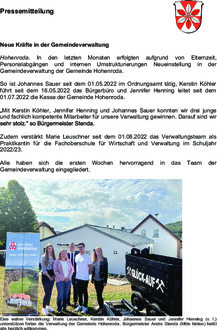 Hohenroda. In den letzten Monaten erfolgten aufgrund von Elternzeit, Personalabgängen und internen Umstrukturierungen Neueinstellung in der Gemeindeverwaltung der Gemeinde Hohenroda.