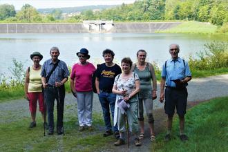 Weiter ging es zur Staumauer und dann auf der Westseite den See entlang Richtung Steinhaus. Am südlichen Ende des Sees überquerten wir die Haune in östlicher Richtung nach ca. 1,5 km durch freies Feld und einer Gesamtstrecke von 7,5 km erreichten wir unseren Ausgangspunkt. Der übliche Abschluss mit Mittagessen und gemütlichem Beisammensein erfolgte im Biergarten des Restaurants Rhönblick in Steinau. Der 1. Vorsitzende Karl-Heinz Rudolph dankte den Wanderfreunden Elisabeth und Wilhelm Berk für die Organisation.