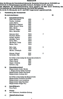 Gemäß § 25 HGO hat Bürgermeister Stenda nicht an der Beratung und Beschlussfassung teilgenommen.