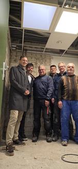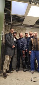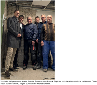 Von links: Bürgermeister Andre Stenda, Bauamtsleiter Patrick Pingitzer und das ehrenamtliche Helferteam Oliver Vock, Julian Suresch, Jürgen Suresch und Michael Dreese.
