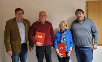 Für 40 Jahre Mitgliedschaft in der SPD wird Reinhard Rüger und für 25-jährige Mitgliedschaft Christa Schäfer und Helma Fischer durch den 1. Vorsitzenden geehrt.
