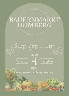 Am Samstag, den 4. April 2026 heißt es von 9 - 13 Uhr rund um das Homberger Rathaus wieder: Bauernmarkt Homberg meets Ostermarkt.