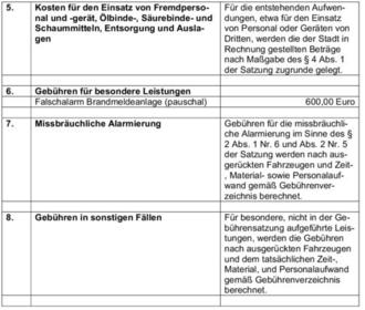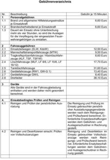 | (1) | Die Verpflichtung zur Erstattung von Gebühren entsteht im Regelfall mit der Alarmierung der Feuerwehr durch die Leitstelle, spätestens mit dem Ausrücken. |
