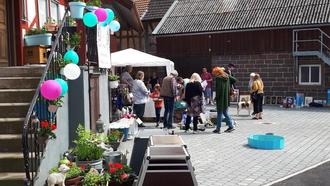 Das Wetter hat bei diesem zweiten Dorfflohmarkt mitgespielt, zur Mittagszeit gab es zwar einige wenige Regentropfen, aber dann strahlte die Sonne den restlichen Tag vom Himmel.