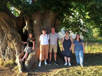 Zur Linde als Baum der Liebe konnte Karin Linker einiges erzählen. Das Lied „Am Brunnen vor dem Tore“, das bei fast allen bekannt war, sang man danach der alten Linde zu.