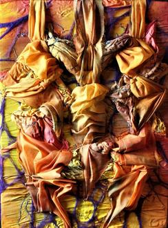 Auf der Suche nach einer lebendigeren, plastischen Ausdruckform und nach direktem Kontakt mit dem Material experimentierte sie mit Papier, Pflanzen, Glas, Holzmehl, Schaumstoff, verschiedenen Folien und Textilien und Wolle. Flexibel und biegsam, sollte es sein und ein einmaliges Werk hervorbringen, dazu sollte die Kommunikation mit den Farben der Malerei nicht ausgeschlossen werden.