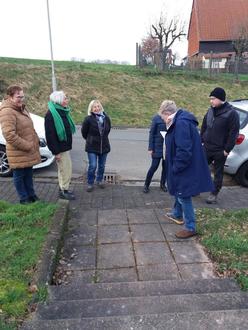 Der stellv. Ortsvorsteher Felix Fischer führte gemeinsam mit Eva Sechting die Seniorenbeauftragten der Stadt Homberg (Ohm) durch das Dorf und schon beim Treffpunkt gab es die ersten Fragen. Wie kommen Bürger mit eingeschränkter Mobilität in das Dorfgemeinschaftshaus. Zur Sicherheit und zur Vermeidung von Unfällen fehlt ein Geländer bei den Stufen. Diese sind mit einem Rollator oder gar Rollstuhl praktisch nicht zu bewältigen. Man war sich einig, dass ein Geländer nicht so teuer sein kann. Noch problematischer sieht es innerhalb des Gebäudes aus. Die Toiletten befinden sich im Keller und selbst der Versammlungsraum ist nur über Treppen zu erreichen.