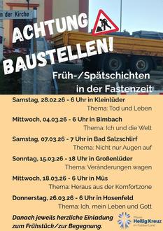 | 18.00 Uhr | Gro | Spätschicht in der Fastenzeit „Veränderungen wagen“ |