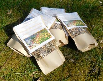 Die einjährig wachsende Blühmischung enthält bis zu 35 Blumenarten (z.B. Duftresede, Drachenkopf, Buschwinden, Schleierkraut usw.) und reicht für eine Fläche von ca. 15 m². Die 100-Gramm-Beutel sind für 4 Euro pro Stück an der Gemeinde Hosenfeld erhältlich.