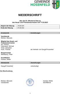 Niederschrift zur Sitzung Haupt und Finanzausschuss am 17.03.2025
