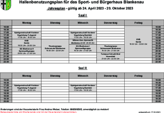 Hallenbenutzungsplan für das Sport- und Bürgerhaus Blankenau