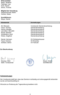 | zu TOP 1 | Genehmigung der letzten Sitzungsniederschrift |