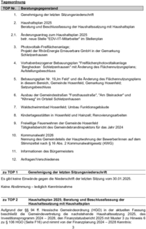 | zu TOP 2 | Haushaltsplan 2025; Beratung und Beschlussfassung der Haushaltssatzung mit Haushaltsplan |