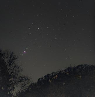 Orions Gürtelsterne und der Orionnebel über der Milseburg.