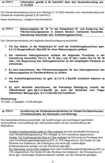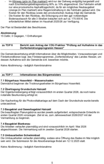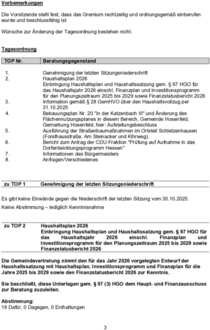 Niederschrift zur Sitzung Gemeindevertretung am 11.12.2025 (öffentlich)