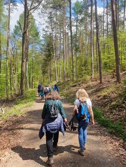 In der Wallfahrtskirche Kleinheiligkreuz wurde eine kurze Rast mit einem weiteren Impuls zum Thema „Hoffnung vom Kreuz“ gegeben. Nach einem Biss in das Brot und einem Schluck aus der Trinkflasche ging es auf den letzten Etappenteil in Richtung Schnepfenkapelle, oberhalb von Bimbach. Nach einer kurzen Maiandacht in der Schnepfenkapelle, kamen alle Pilgerwanderer noch zu einem Plausch in der Körbelshütte zusammen und reflektierten die gemeinsam geschafften 12 Kilometer Wegstrecke.