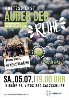 | 19.00 Uhr | BSa | Gottesdienst „Außer der Reihe“ mit dem Chor Vox Juventatis anschl. Gepa Verkauf |