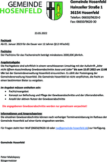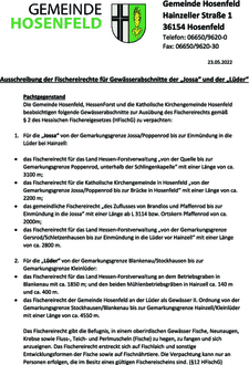Ausschreibung der Fischereirechte für Gewässerabschnitte der „Jossa“ und der „Lüder“