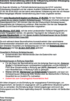Änderung Verkehrsführung Hosenfeld - Schletzenhausen