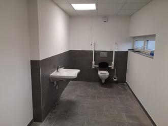 Mit der neu eingerichteten Behindertentoilette im Erdgeschoss und dem bereits vor 9 Jahren errichteten Aufzug ist nun alles behinderten- und altersgerecht zugänglich und nutzbar. Und mit den neuen Tischen und Stühlen, die erst letzte Woche durch den Ortsbeirat aufgestellt worden sind, wurde das Projekt abgeschlossen.