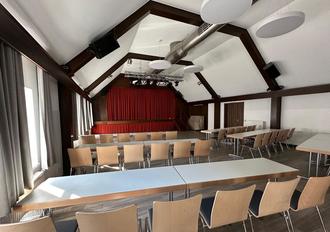 Großer Saal mit neuem Mobiliar, neuer Beleuchtung und Lüftungsanlage