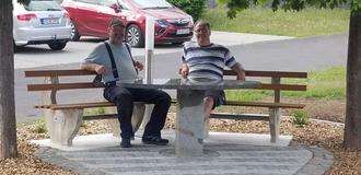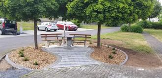 Wer in den letzten Wochen am Bürgerhaus vorbeigekommen ist hat festgestellt, es hat sich wieder was getan. Unter den zwei Kugelahornbäumen vor dem Bürgerhaus ist eine kleine Wohlfühloase entstanden. Unter der Leitung der beiden Experten Matthias Bickert (Kiesel) und Christoph Schnabel (Urmel) hat ein Team aus Familienmitgliedern und Freunden der beiden wieder ein gemütliches Plätzchen zum Verweilen geschaffen. Viele Stunden ehrenamtlichen Engagement sind zusammengekommen. Finanziert wurde das Ganze mit Geldern für die Teilnahme am Wettbewerb „Unser Dorf hat Zukunft“, Eigenmittel und weiteren Mitteln.