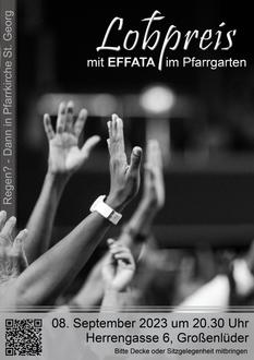 | 20.30 Uhr | Gro | Lobpreis mit EFFATA im Pfarrgarten |