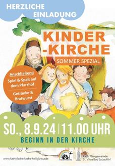 | 11.00 Uhr | BSa | Kinderkirche im Pfarrheim (Beginn in der Kirche) anschl. Spiel und Spaß auf dem Pfarrhof, Getränke und Bratwurst |