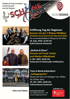 | Infos und Kartenreservierung: | Gemeinde Eichenzell, Tel. 06659 979-143 oder -148, kulturamt@eichenzell.de |