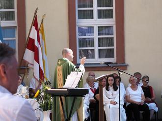 Das Pfarrfest am Sonntag begann um 11:00 Uhr mit einem Festgottesdienst auf dem Propsteiplatz. Der Gottesdienst wurde musikalisch mitgestaltet vom Gesangverein Harmonie Blankenau unter Leitung von Margarita Bechler und der Kindersinggruppe unter Leitung von Stephanie Bickert, Stephanie Faust und Regina Vogel.