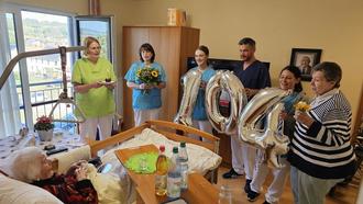 Im Kreise ihrer Familie feierte Frau Feußner ihren Ehrentag und konnte zudem auch die Glückwünsche von Bürgermeister Peter Malolepszy entgegennehmen. Weiterhin beglückwünschten sie die Mitarbeiterinnen und Mitarbeiter unseres Hauses der Einrichtungsleiter Victor Hau, der einen bunten Blumenstrauß überbrachte.
