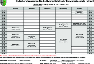 Hallenbenutzungsplan für die Gymnastikhalle der Schwarzatalschule Hainzell