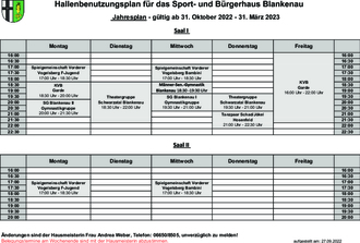 Hallenbenutzungsplan für das Sport- und Bürgerhaus Blankenau