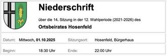 Das Protokoll der letzten Ortsbeiratssitzung wurde einstimmig angenommen. Es gab keine Beanstandungen
