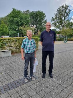 100. Blutspender Christoph Schneider (links) mit Stephan Gömpel (rechts) Bereitschaftsleiter des DRK OV Neuhof
