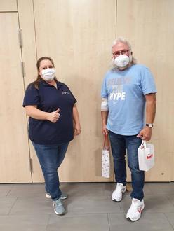 100. Blutspender Roland Böhm (rechts) mit Christine Zierfuß ( links) Ehrenamtliche Helferin des DRK OV Neuhof