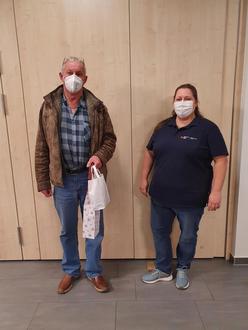 100. Blutspender Rainer Lorei (links) und Christine Zierfuß (rechts) Ehrenamtliche Helferin des DRK OV Neuhof