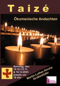 | 18 Uhr | „Ökum. Taizé-Andacht“ in der Martin-Luther-Kirche, Großenlüder |
