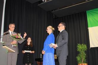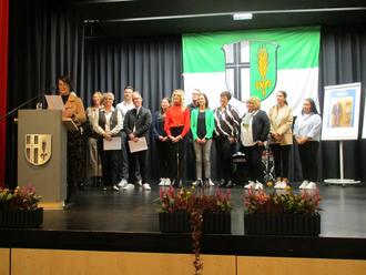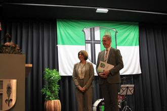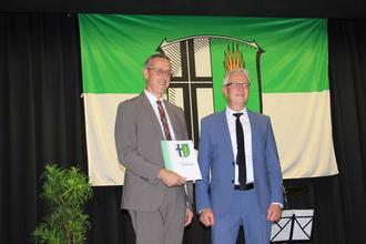 Die offizielle Verabschiedung von Bürgermeister Peter Malolepszy begann mit einem Rückblick auf dessen Wirken in den vergangenen zwei Amtsperioden durch den Ersten Beigeordneten Hubert Kasseckert und der Übergabe einer Dankurkunde, gefolgt von Michaela Alt, die eine Hosenfeld-Medaille sowie einen Blumenstrauß an Katja Malolepszy übergab.