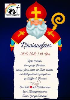 In diesem Jahr findet wieder für unsere Kleinen eine Nikolausfeier am Mittwoch, den 06.12.2023 im Bürgerhaus Hainzell statt. Begonnen wird um 15 Uhr mit Kaffee und Kuchen. Außerdem erwarten wir den Hl. Nikolaus. Wir freuen uns auf Euch.