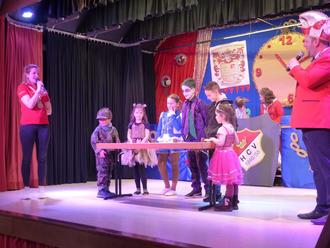 Unsere 3 Ratsherren Prinz Udo der 65. (Udo Schmitt), Prinz Marco der 66. (Marco Gretsch) und Adjutant André der 30. (André Schmitt) wünschten den Kindern einen schönen Nachmittag und überreichten das Zepter an das diesjährige Kinderdreigestirn. Angeführt wurden die Kinder in diesem Jahr von den „3 tanzenden Elfen vom HCV“ - Neele Vaupel die 17., Sina Spiegel die 18. und Maja Vaupel die 19. . Nach ein paar Worten an Ihre närrischen Gäste ging die bunte Kinderfastnacht los.