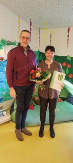 Frau Beyer ist als Erzieherin in der Kindertagesstätte „Kunterbunt“ in Hainzell tätig und konnte am 01.04.2023 auf 25 Jahre Beschäftigung im öffentlichen Dienst zurückblicken.