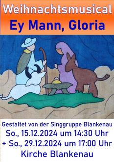 | 17.00 Uhr | Weihnachtsmusical „Ey Mann, Gloria!“ gestaltet von der Singgruppe Blankenau mit Kindersegnung |