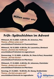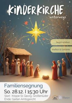 | 15.30 Uhr | Gro | Kinderkirche unterwegs mit Familiensegnung – Beginn an der Krippe in der Pfarrkirche St. Georg, Ende Amtshausgarten |